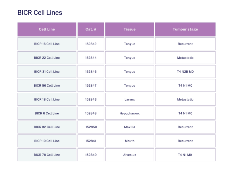 - Related tools: BICR 10 Cell Line ; BICR 16 Cell Line ; BICR 18 Cell Line ; BICR 22 Cell Line ; BICR 3 Cell Line ; BICR 31 Cell Line ; BICR 6 Cell Line ; BICR 56 Cell Line ; BICR 78 Cell Line