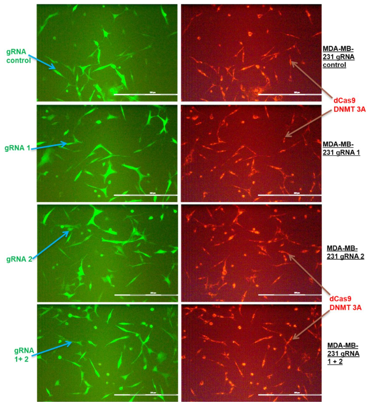 Gene-edited MCF7 sgRNA 1 u0026 2 and MDA-MB-231 sgRNA 1 u0026 2 cell lines enable the investigation of the breast BRCA1 non mutated and hypermethylated breast cancer tumourigenesis pathways. Both cell lines contain site-specific methylations in the BRCA1 promoter.